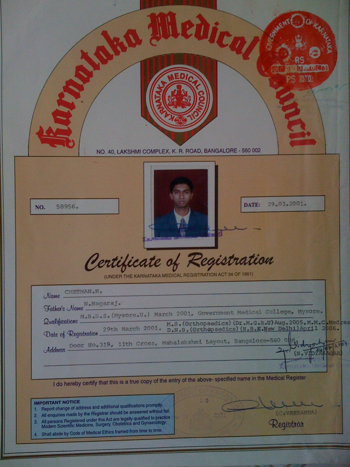 Mar 2002 to Mar 2005: Resident Orthopedics, Madras Medical College, Chennai