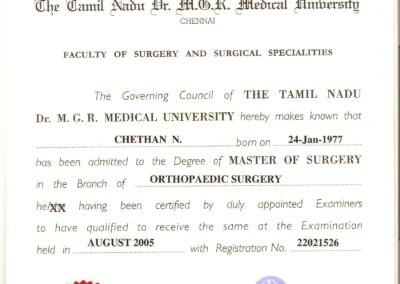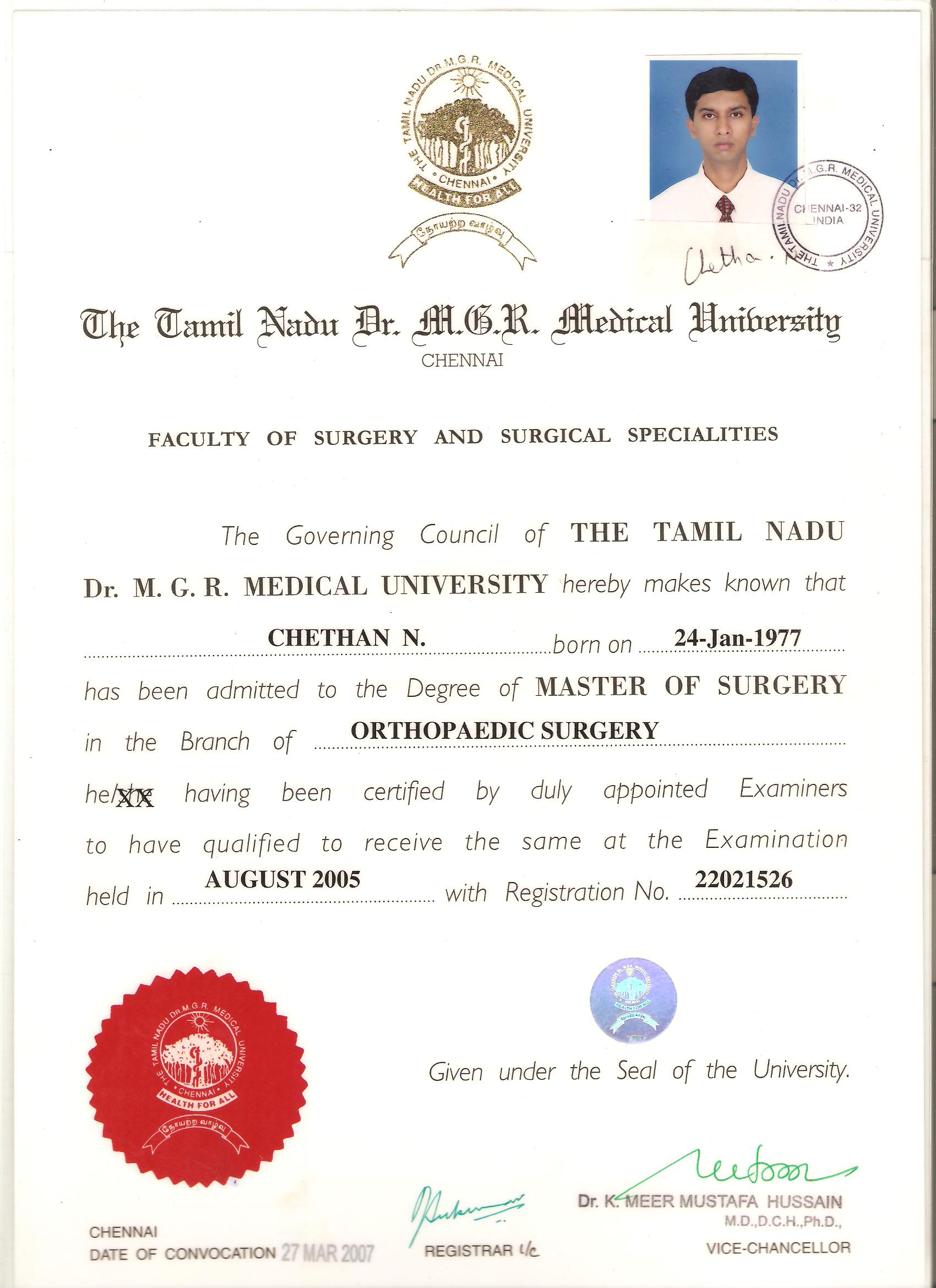 Master of Surgery MS (Orthopedics), Madras Medical College, Chennai, India Diplomate of the National Board (DNB) Orthopedics MNAMS Orthopedics