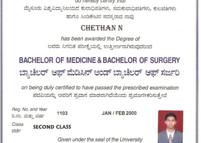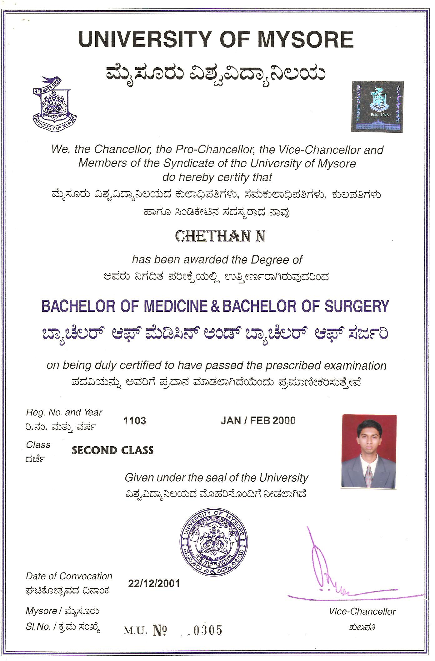 Bachelor of Medicine and Bachelor of Surgery (MBBS) Mysore University, Mysore, India.